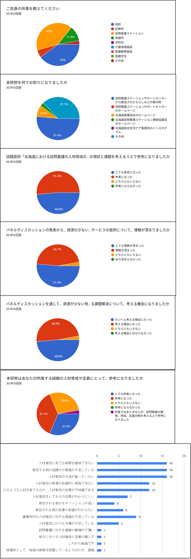 アンケートからは、少ない地域における人材確保や育成の苦労、パネラーの発表を通じて、自分の地域でできる工夫について言及されているようです。